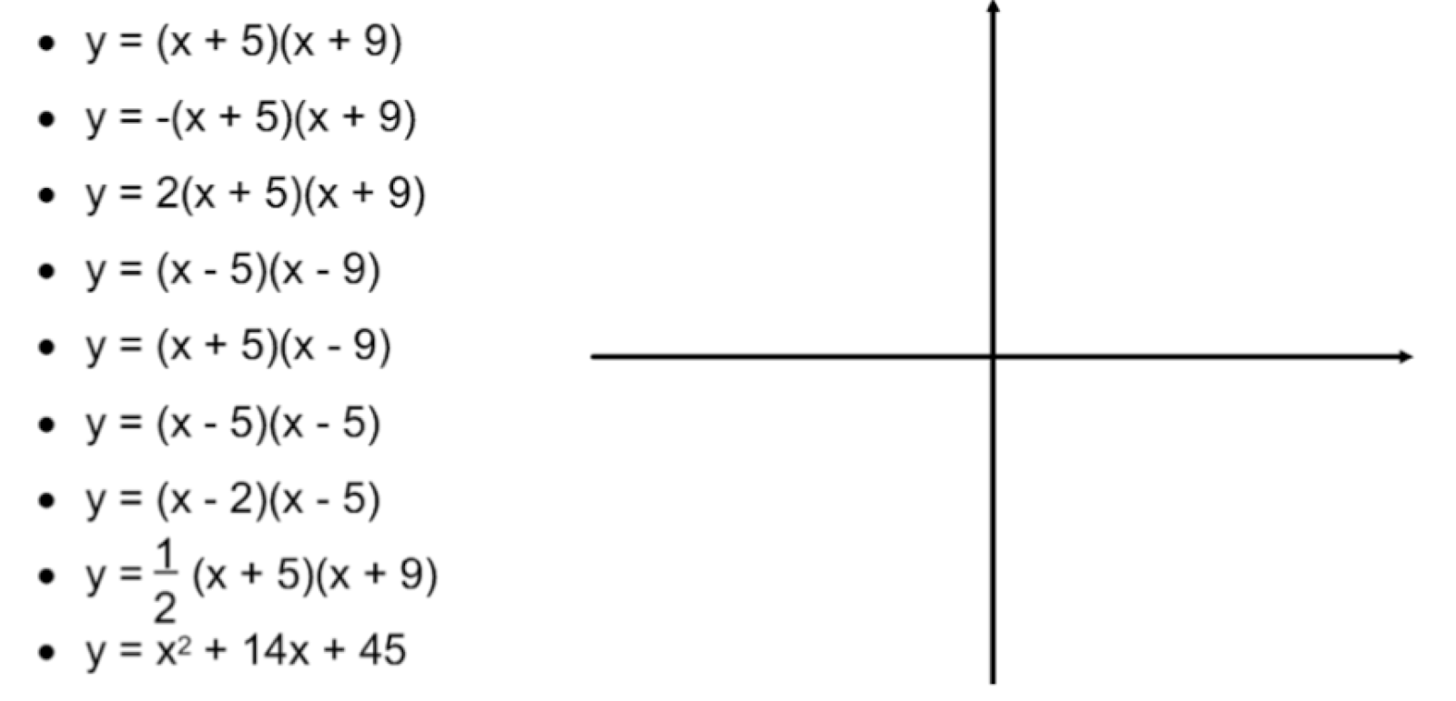 - Learners could be given the plotted graphs and the equations and asked to match them.