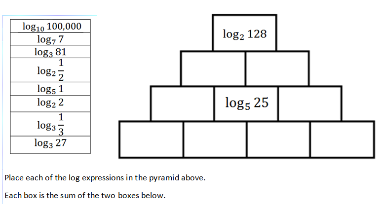 September 14, 2018June 25, 2020 Chris McGrane Log Pyramid Task One An opportunity for learners to practice their evaluation of logs. Credit: @chrismcgrane84 Share this:Tweet Click to share on WhatsApp (Opens in new window) WhatsApp Click to email a link to a friend (Opens in new window) Email Click to print (Opens in new window) Print Like Loading... Related