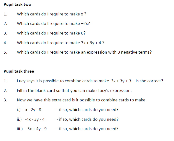 The first task that can be performed is asking pupils what they get when they combing the terms. From experience, I would encourage pupils to physically lay the terms out for each question – side by side.