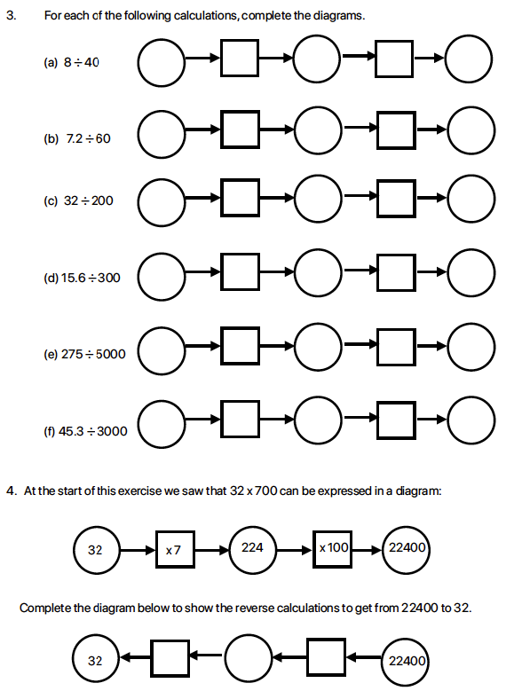 2. Multiplication and division questions of these sort are something that many weaker pupils find challenging. This graphical process approach, is designed to break the steps up for pupils.