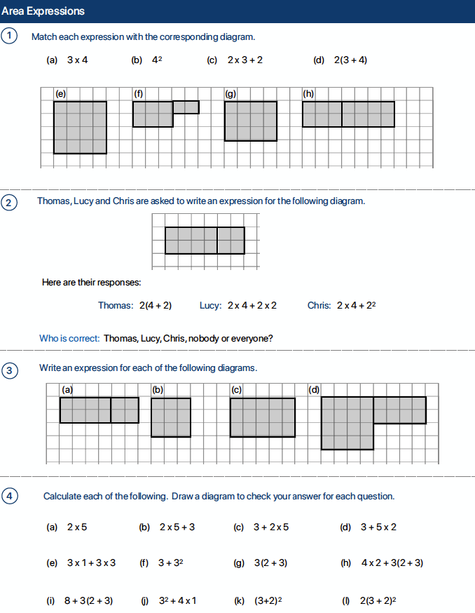 Question 2 is one I am quite proud of, as this draws out one of the key ideas of the original task: that different expressions represent the same area.
