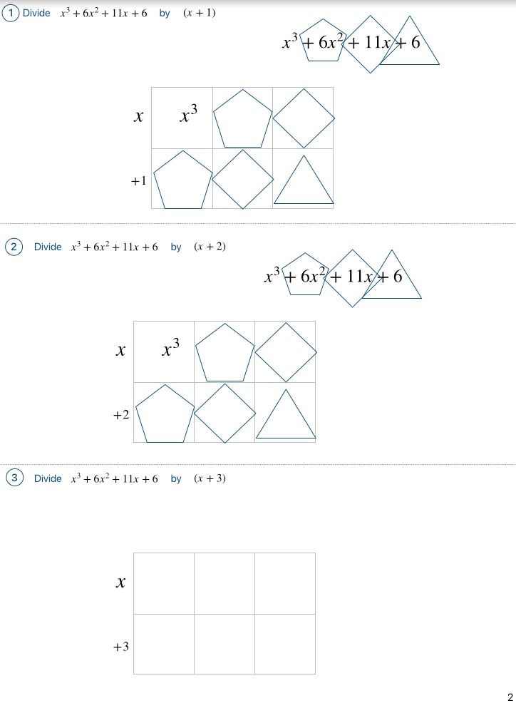 I don’t do synthetic division as it’s not a forward facing method. The grid works at Advanced Higher for long division proper. We all too often do synthetic division when it isn’t required at Higher Maths. Synthetic division doesn’t make the easy questions easier – but it does make the hard questions harder!