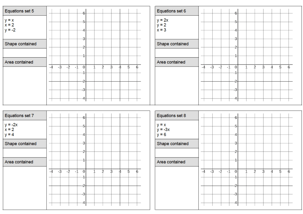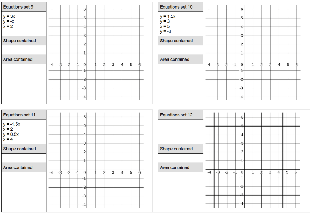 This is top-notch task design in action, again, from Bruce Gray. I love the way that attention is taken away from the lines, to focus on the enclosed area work. This is much more than routine practice of plotting lines, although it serves that procedural skill – it gives pupils opportunities to be creative and apply their thinking. The further into the task we go, the more interesting it becomes.