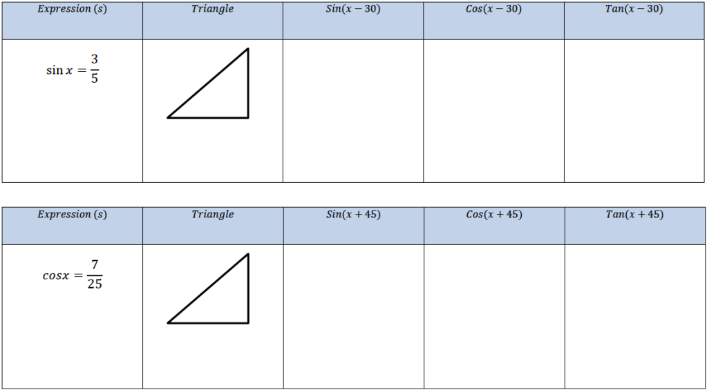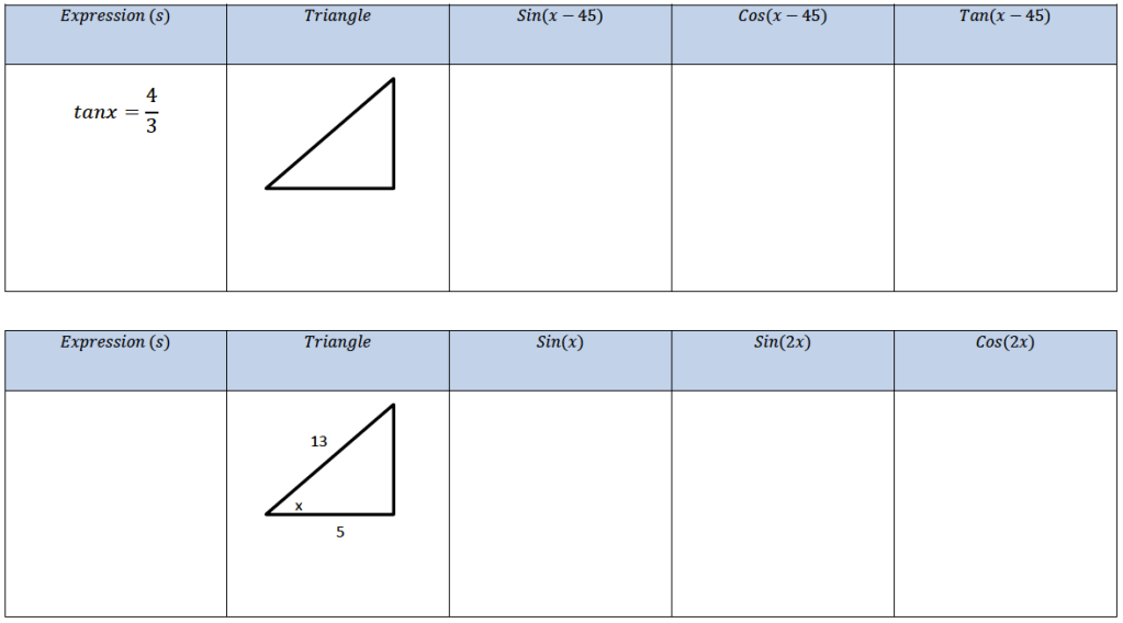 January 13, 2021 Chris McGrane Addition and Double Angle Formulae A lovely task on using the addition and double angle formulae. This comes from @Holyroodsecm, Mr Cooke. Share this:Tweet Click to share on WhatsApp (Opens in new window) WhatsApp Click to email a link to a friend (Opens in new window) Email Click to print (Opens in new window) Print Like Loading... Related